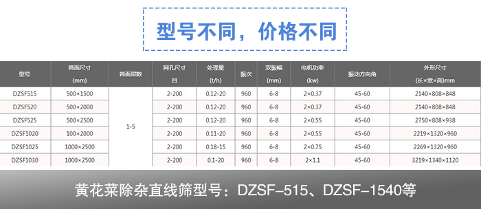 黃花菜除雜直線篩型號:DZSF-515、DZSF-1540等