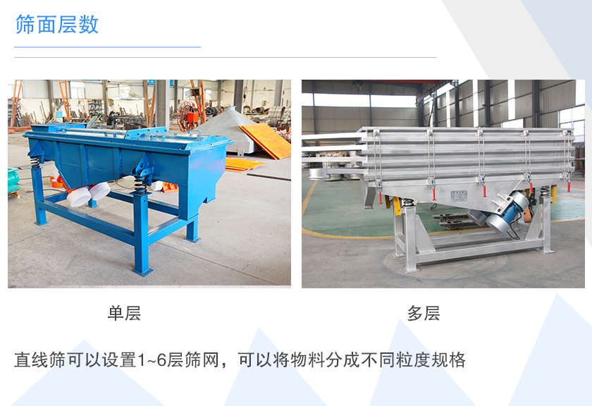 直線篩可以設置1~6層篩網,可以將物料分成不同粒度規格,隨著層數的增加,其耗材和做工成本就越高,所以價格也會相應增高。